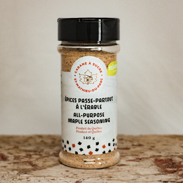 Épices passe-partout à l’érable est idéal pour les viandes (bœuf, poulet et saumon). Idéal pour relever les pommes de terre ou pour givrer un verre de bloody ceasar.